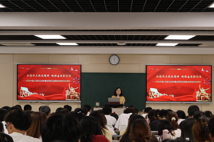今年适逢中国人民抗日战争暨世界反法西斯战争胜利80周年,课堂上,邹一琴以“弘扬伟大抗战精神 砥砺奋进新征程”为主题,以九三阅兵引入,深入阐释“正义必胜,和平必胜,人民必胜”的深刻内涵,结合历史与现实,激励同学们铭记历史、珍爱和平,将民族精神转化为奋进动力,引导学生从历史中汲取奋进力量,理解走和平发展道路的重要性,树立科学的形势判断与政策认知。