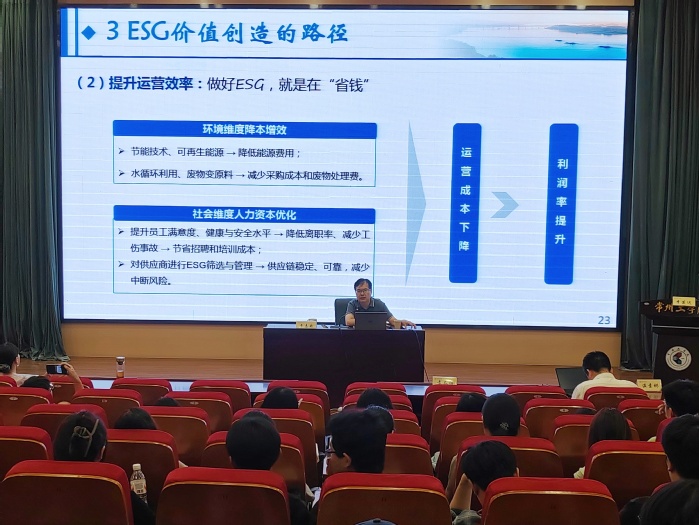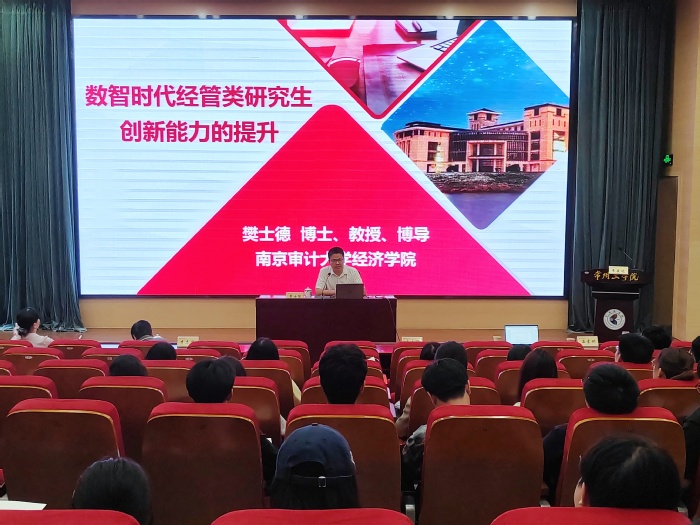专家讲座环节,李志斌作了题为《ESG与企业价值创造》的专题讲座。从企业价值创造、ESG价值创造的理论基础、ESG价值创造的路径和我国ESG问题及优化对策四个方面,深入探讨ESG与企业价值创造的关系,并给出了针对我国企业ESG报告的优化建议。樊士德以《数智时代经管类研究生创新能力的提升》为题,给大家分享了在数智时代经管类研究生培养面临的挑战,需要完成的目标要求,及可以采取的方式方法,并鼓励各位研究生要积极做好学术研究。温素彬围绕“学术道德规范与论文写作”展开讲解。他首先阐明本科、硕士和博士三个阶段不同的三种学习境界,详细阐述学术规范制度,并分享自己多年来对科学研究和论文写作的心得体会。
