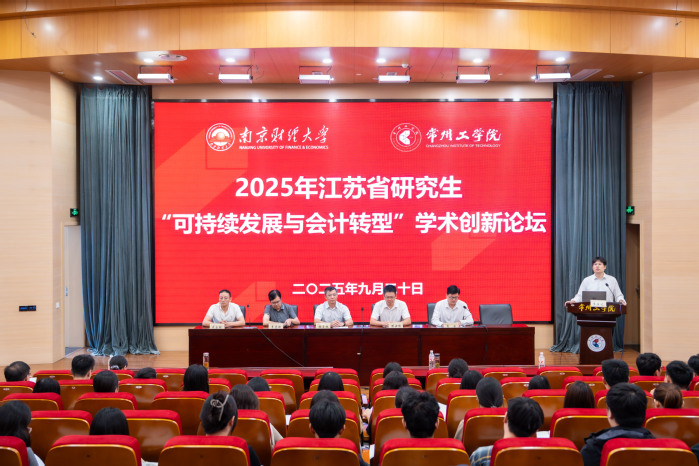 9月20日,由江苏省管理学类研究生教育指导委员会主办、南京财经大学承办、常州工学院协办的2025年江苏省研究生“可持续发展与会计转型”学术创新论坛在我校成功举办。江苏省管理学类研究生教育指导委员会秘书处负责人、东南大学经济管理学院教授张玉林,常州工学院研究生处副处长李成出席会议并致词。南京审计大学会计学院院长温素彬,南京审计大学经济学院院长樊士德,扬州大学商学院院长李志斌,江苏理工学院商学院副院长袁奋强,以及来自南京大学、中国矿业大学、中南财经政法大学、南京财经大学、青岛大学、常州大学、烟台大学、江苏理工学院和常州工学院等高校的研究生代表、骨干教师参加会议。本次论坛分开幕式、专家讲座、平行论坛和论文评选四个环节。开幕式由我校经济与管理学院党委副书记、副院长(主持工作)李芸达主持。