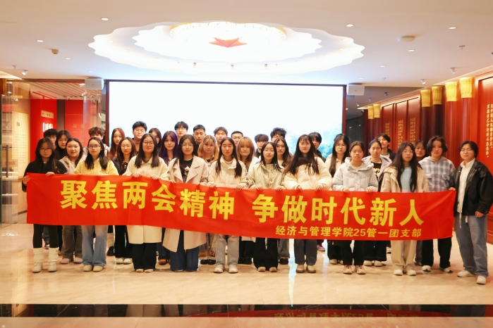 为深入学习贯彻习近平总书记参加江苏代表团审议时的重要讲话精神,3月21日,经济与管理学院25管一团支部以“理论学习+实地研学”的形式,组织开展“聚焦两会精神 争做时代新人”主题团日活动。