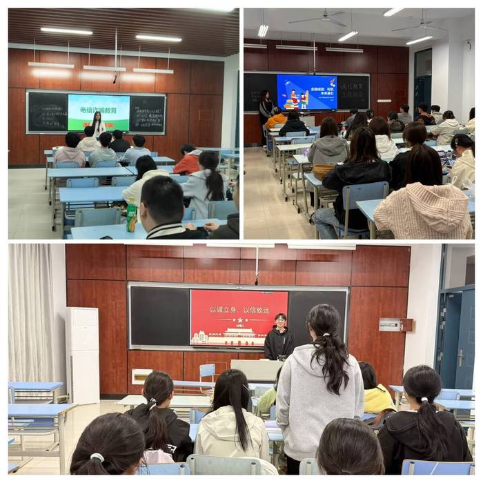 活动期间,王聪聪老师围绕国家助学贷款政策及征信体系建设进行深入解读,剖析当代大学生应如何践行契约精神。随后,各班级召开诚信主题班会,同学们围绕“学术诚信”“考试诚信”“网络诚信”等话题展开热烈讨论,通过分享身边诚信故事、反思失信典型案例,深刻体悟到诚信乃立身之本。学院还同步开展了金融知识与防范电信诈骗专题教育,现场穿插诚信与反诈知识趣味问答环节。同学们踊跃抢答,在轻松活跃的氛围中掌握了识别金融陷阱、保护个人信用的实用技能,有效提升了风险防范意识与自我保护能力。